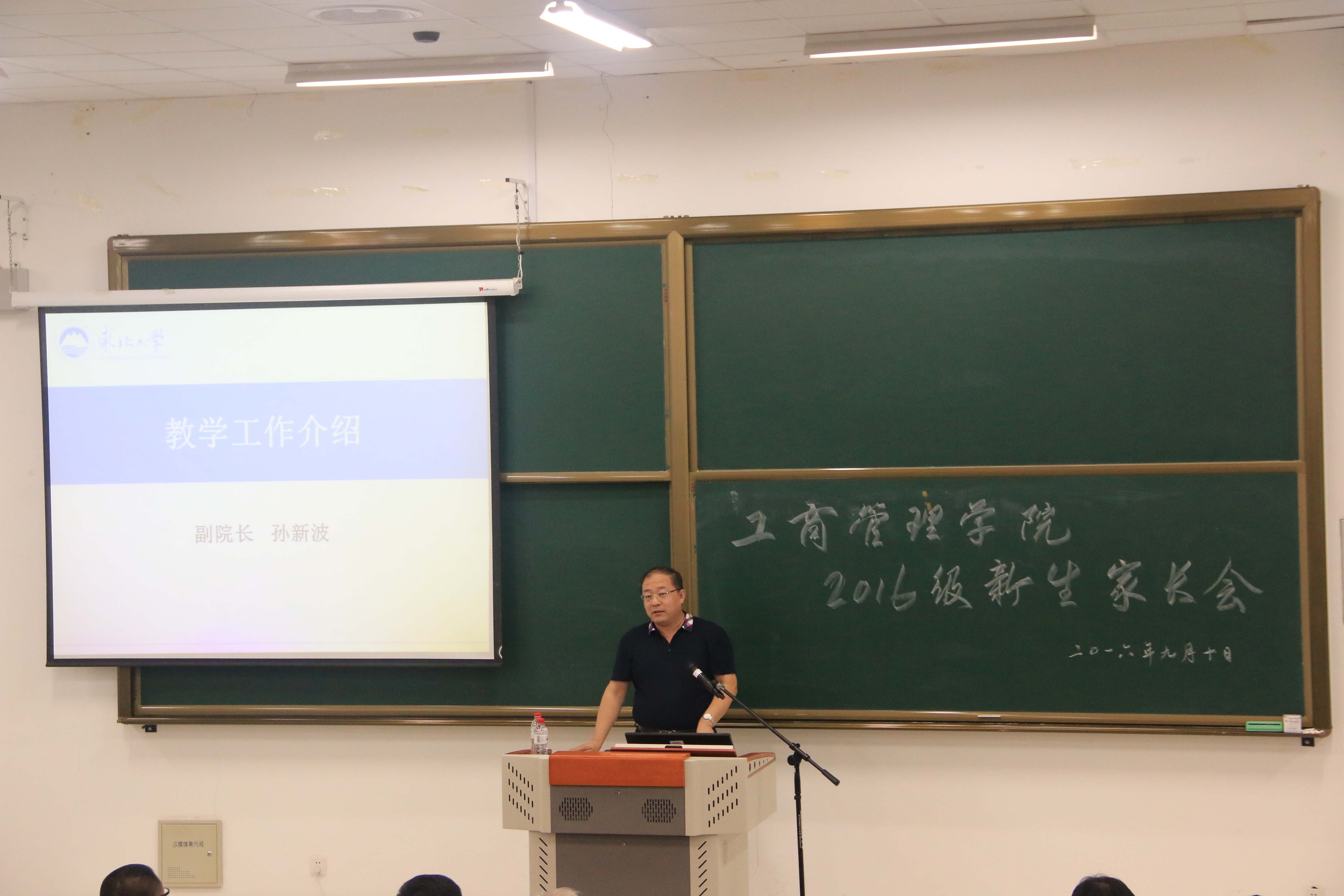 孙新波副院长为各位家长详细解读了2016级本科生培养计划,并介绍了学院从多角度出发对培养计划进行修订的过程,使家长们更加清晰、深刻地理解“1、2、8”和“8+1+1”教学模式的含义。