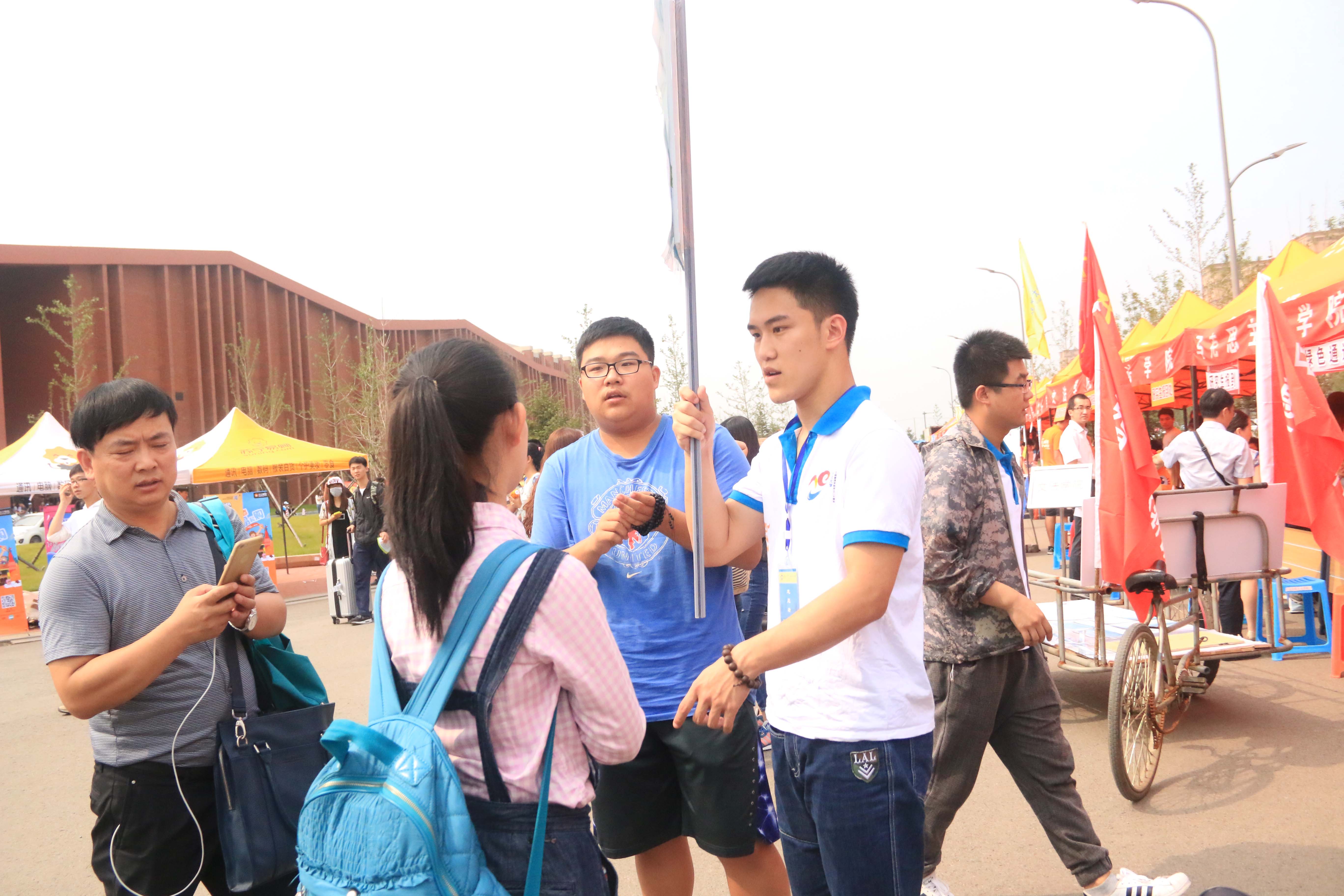 迎新活动正式开始后,接待处的志愿者们便忙碌起来,他们帮新生提东西,指引新生报到,给新生带路。