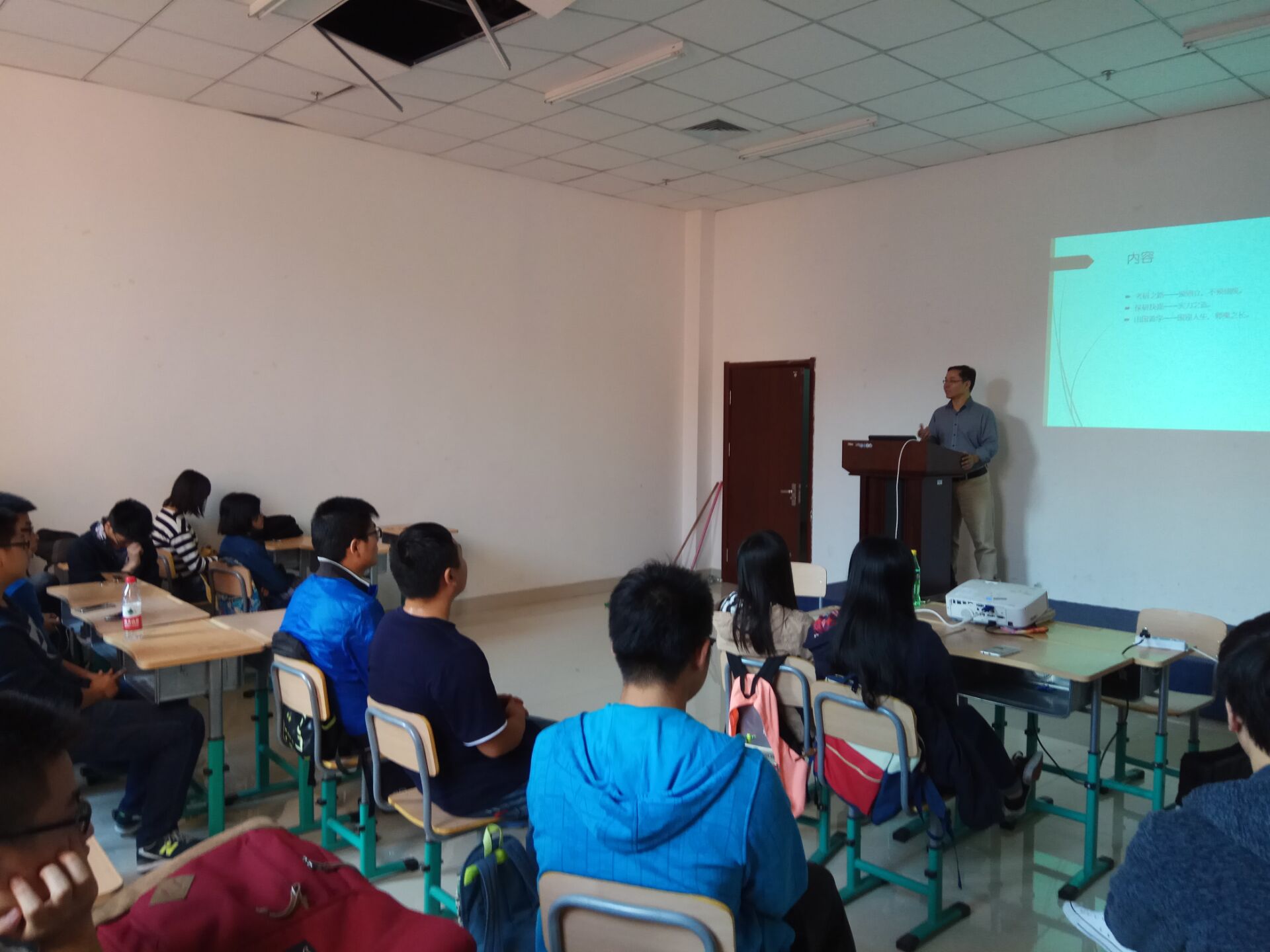 活动开始时,喻海飞老师就同学们现在所处的阶段给大家讲解了一些需要注意的问题,并告诉大家现在已经是高年级了,必须要明确自己的定位以及想清楚今后道路的打算,保研、考研、出国或就业都是同学们将要面临的抉择,一旦自己有了答案,就一定要坚持下去,人生就是预则立,不预则废,今天的辛劳将换来明天的收获。老师的一席话让同学们清楚了自己的目标,也明确了大家在大学里努力的方向。