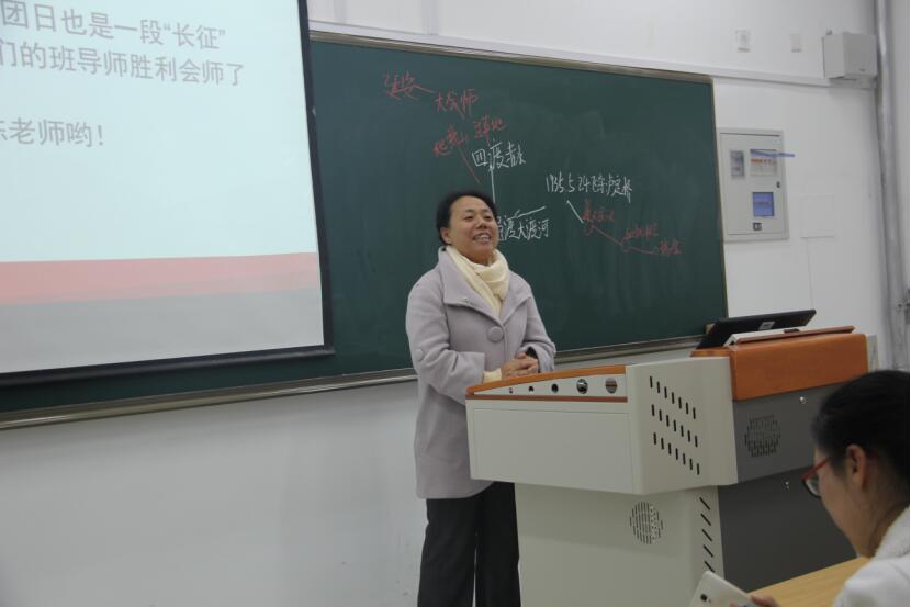 随后,陈桂云老师借长征精神,谈及全球企业间的互相配合,以华为企业为例,讲述了其与其他各大手机企业之间的合作,逐渐成为世界知名企业。老师还为我们讲解了现代化的长征以及国产企业的长征,还简要分析了东北地区生产力过剩,老龄化等情况。陈老师还对新班级也寄予了新的期望,希望同学们在接下来的生活中不仅要学习努力,还要处理好人际关系,互相帮扶。老师希望这三年她可以和我们一起学习,一起成长。最后,石天老师语重心长,对新班级寄予了期望,希望这个重新组建的新班集体能在最快的时间内凝聚起来,寝室成员和睦相处,在学习上互帮互助。