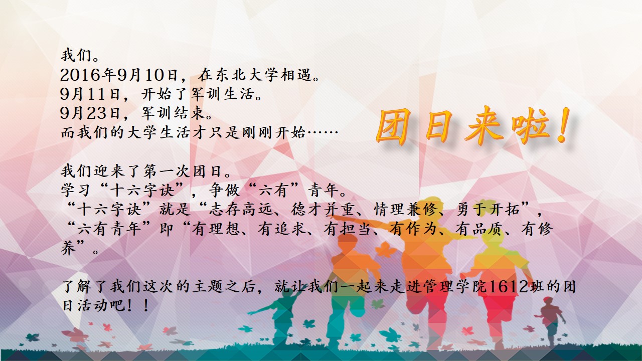 【精品团日】学习“十六字诀”,争做“六有”青年——经管类1612团支部