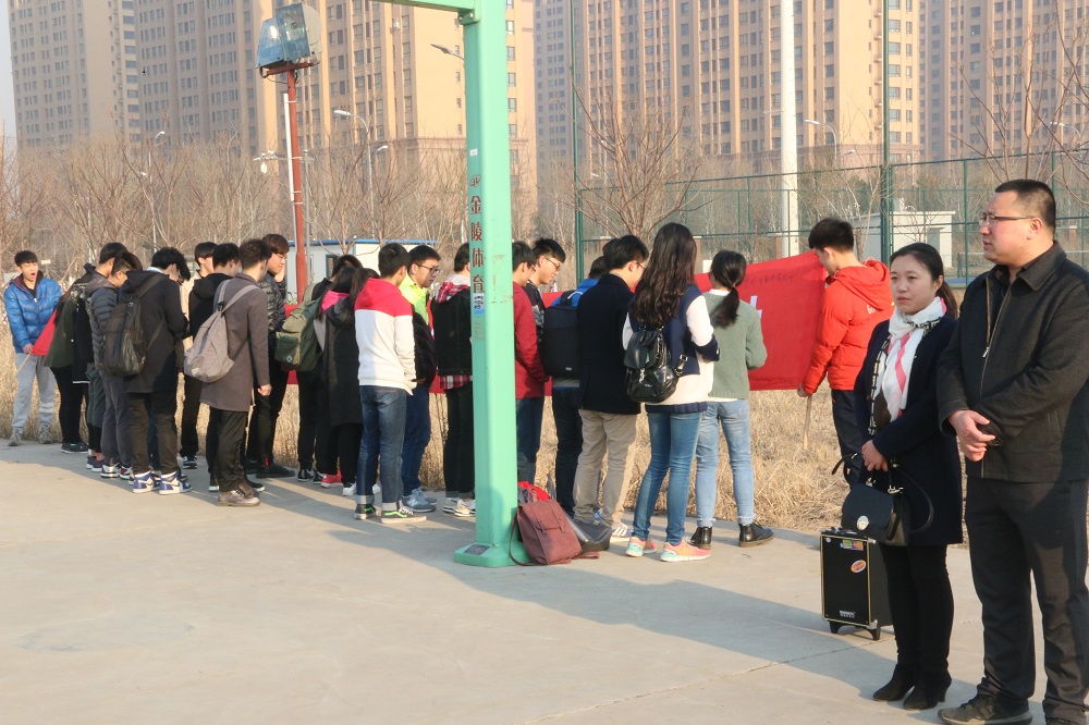 学生会主席申城玮详细阐释了活动内容和意义,活动计划历时3个月,利用每天清晨20分钟有效时间,通过必修选修相结合的方式,开展竞技类、素拓类以及兴趣小组活动类体能课程。呼吁学生要持之以恒,养成良好的作息习惯。学生代表秦杨湄宣读了活动倡议书,倡议学生们坚持早起,认真参与,将学习与锻炼有机结合,并代表学生宣誓。杨光为本次商英启晨计划揭幕,各班级负责人在条幅上写下本班名称及口号,商英启晨计划正式启动。