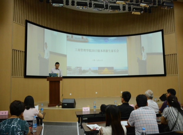 2017级新生杜婧怡、2014级学生刘子寒作为学生代表也在会上进行了发言,分别分享了入学感受与对学弟学妹们的寄语。贾建锋老师作为2017级班导师代表,就学生培养和成长发展与各位家长进行了交流,并介绍了各个专业的学科特色与培养方向,为学生今后成长道路的选择提供了方向。
