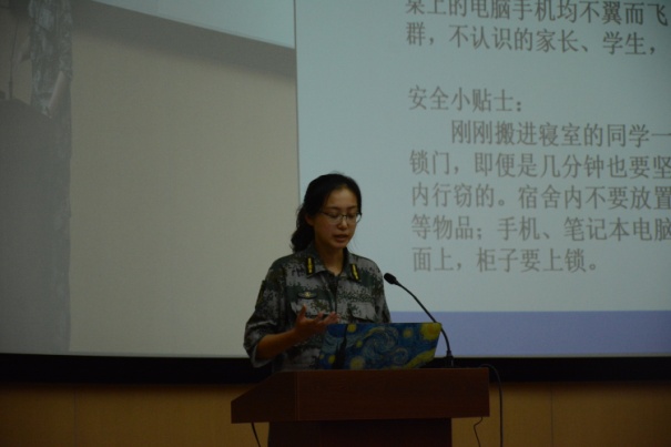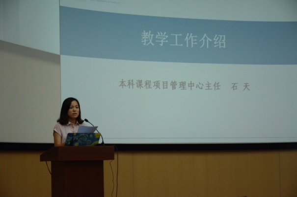 本科课程项目管理中心主任石天老师介绍了教学工作的相关情况,并对学生与家长关注的大类招生与专业分流等问题进行了说明。2017级学生辅导员王鹤棋老师针对学生安全问题与家长们进行了交流,特别向家长们强调了新生入学期间关于人身、财产安全等方面的注意事项。