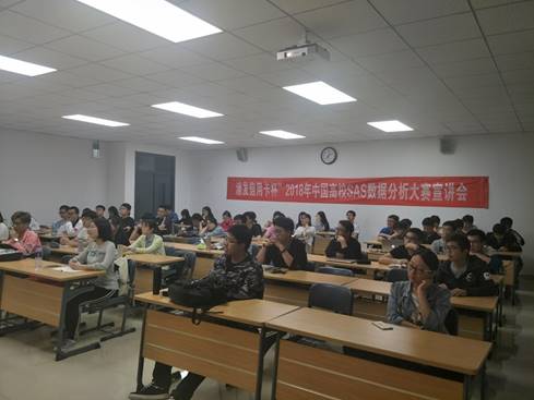 李伟为在座学生介绍了此次比赛,中国高校SAS数据分析大赛是由SAS中国公司发起的专门针对中国高校数据分析相关专业的一次非盈利性的公益大赛。李伟带领同学们回顾了历届大赛状况,并且结合各行业的实际应用,向同学们介绍了SAS的应用领域和强大功能。